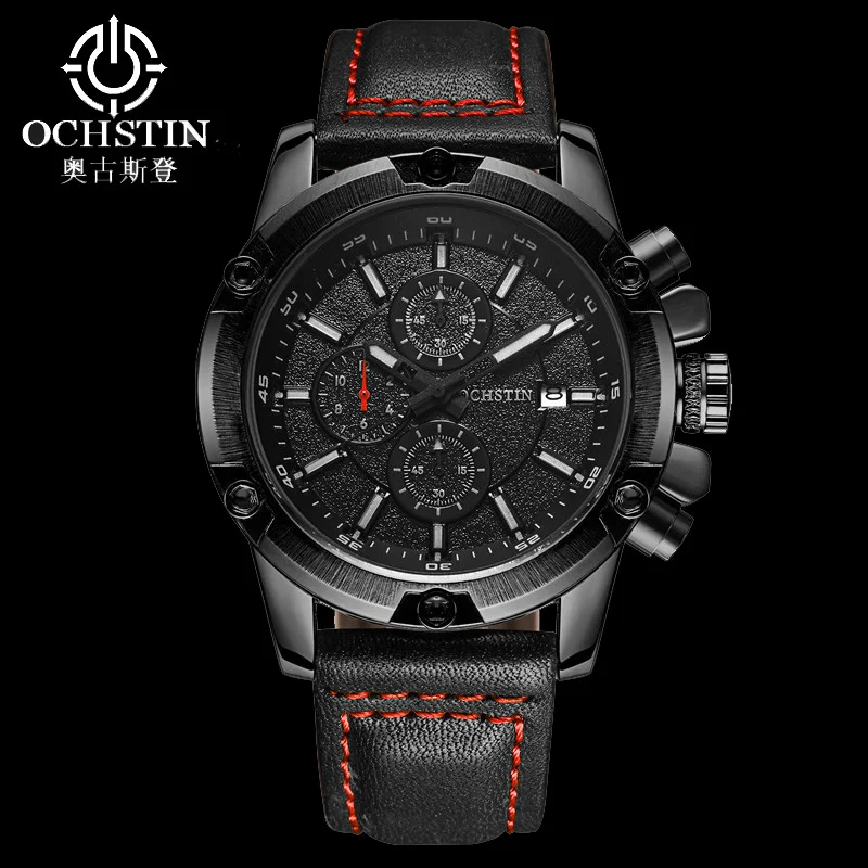 OCHSTIN модный спортивный хронограф Для мужчин Повседневное Водонепроницаемый кожа часы мужской Наручные часы Военная Relogio Masculino