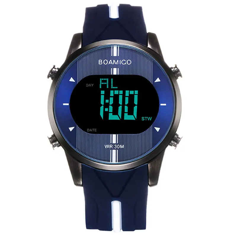 Спорт BOAMIGO Брендовые мужские цифровые часы мужские спортивные часы Резиновая светодиодный Водонепроницаемость мужские наручные часы Relogios ...