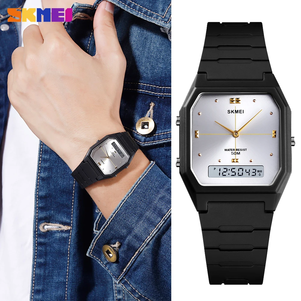 Модные мужские часы электронные часы бренд SKMEI наручные часы Простой дизайн циферблат Двойное время цифровые часы для мужчин и женщин