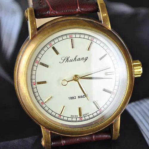 Оптовая Продажа Золотой дизайнер Мужская рука Механическая Кофе часы с ремешком Бесплатная доставка