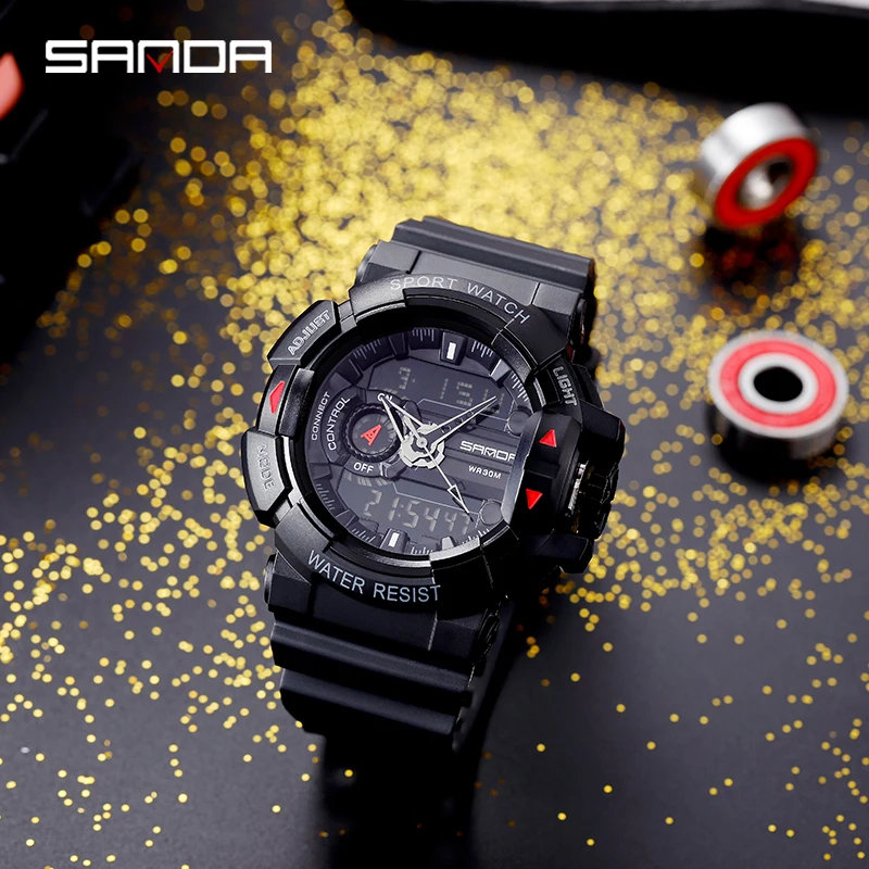 SANDA мужские модные спортивные часы, армейские часы с будильником, противоударные водонепроницаемые цифровые часы, reloj hombre