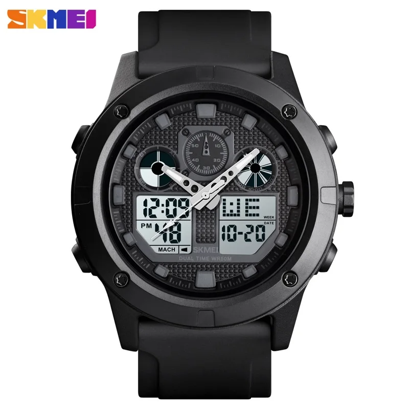 SKMEI, кварцевые часы с двойным дисплеем, мужские уличные спортивные часы, цифровые электронные мужские часы, водонепроницаемые, Топ бренд, Роскошные мужские часы