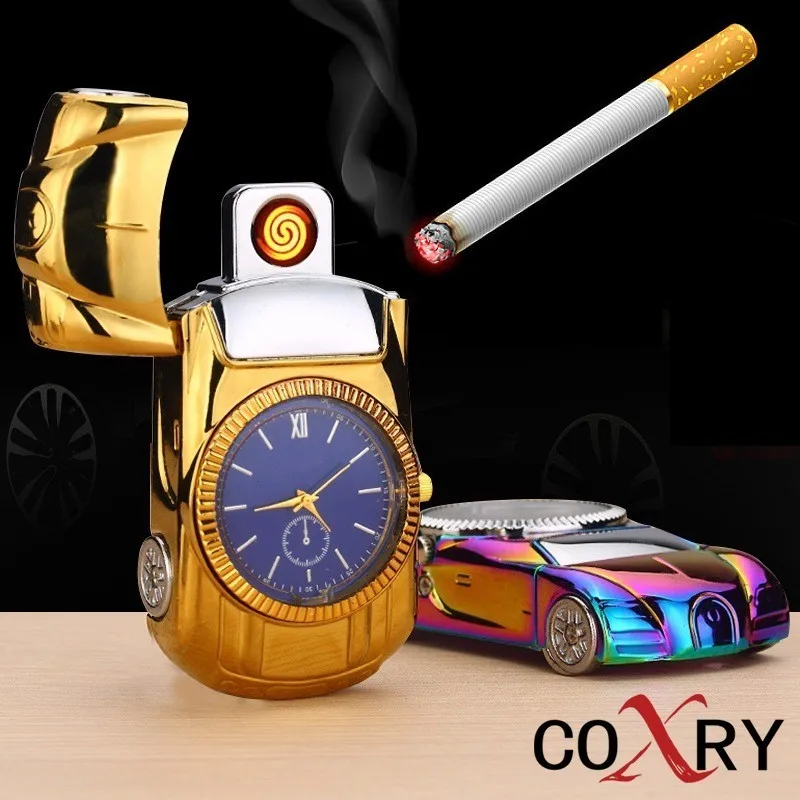 Мужские кварцевые часы COXRY, с usb-зарядкой, беспламенная Зажигалка золотого цвета, модель автомобиля, 2019