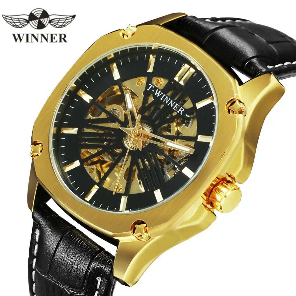 WINNER 2019 Ретро Винтажные Скелет автоматические механические часы мужские золотые римские цифры кожаные мужские часы на ремне лучший бренд кл...