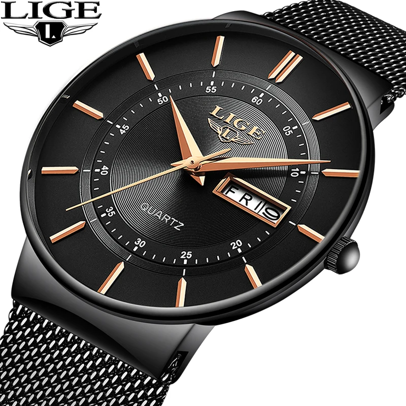LIGE популярные мужские спортивные часы Топ бренд класса люкс ультра тонкие повседневные водонепроницаемые часы Кварцевые полностью стальные мужские часы Relogio Masculino