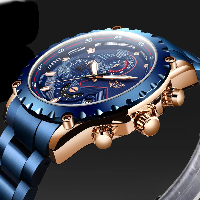 Мужские часы LIGE Лидирующий бренд модные синие из нержавеющей стали водонепроницаемые спортивные часы мужские кварцевые часы мужской хронограф Reloj Hombre