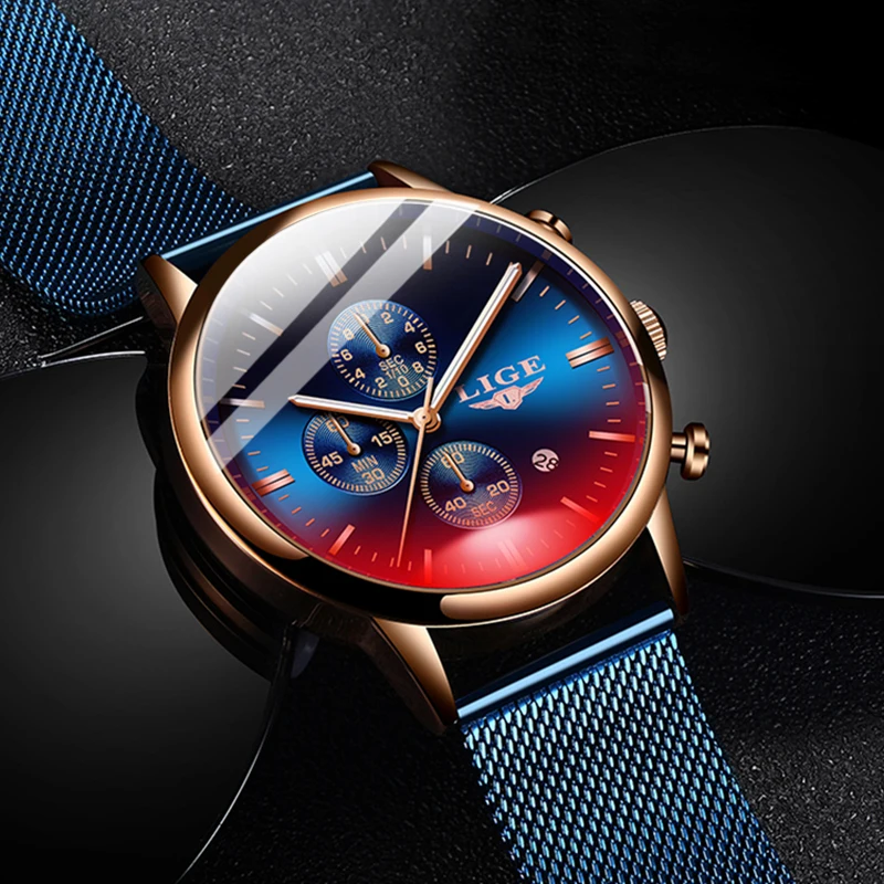 LIGE модные для мужчин s часы лучший бренд класса люкс Синий водостойкие часы ультра тонкий Дата простой повседневное кварцевые...