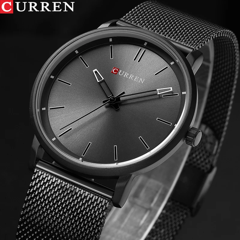Curren Топ люксовый бренд Часы мужчин Нержавеющая сталь сетка ремень кварц-часы ультра тонкий циферблат часов Человек Relogio Masculino