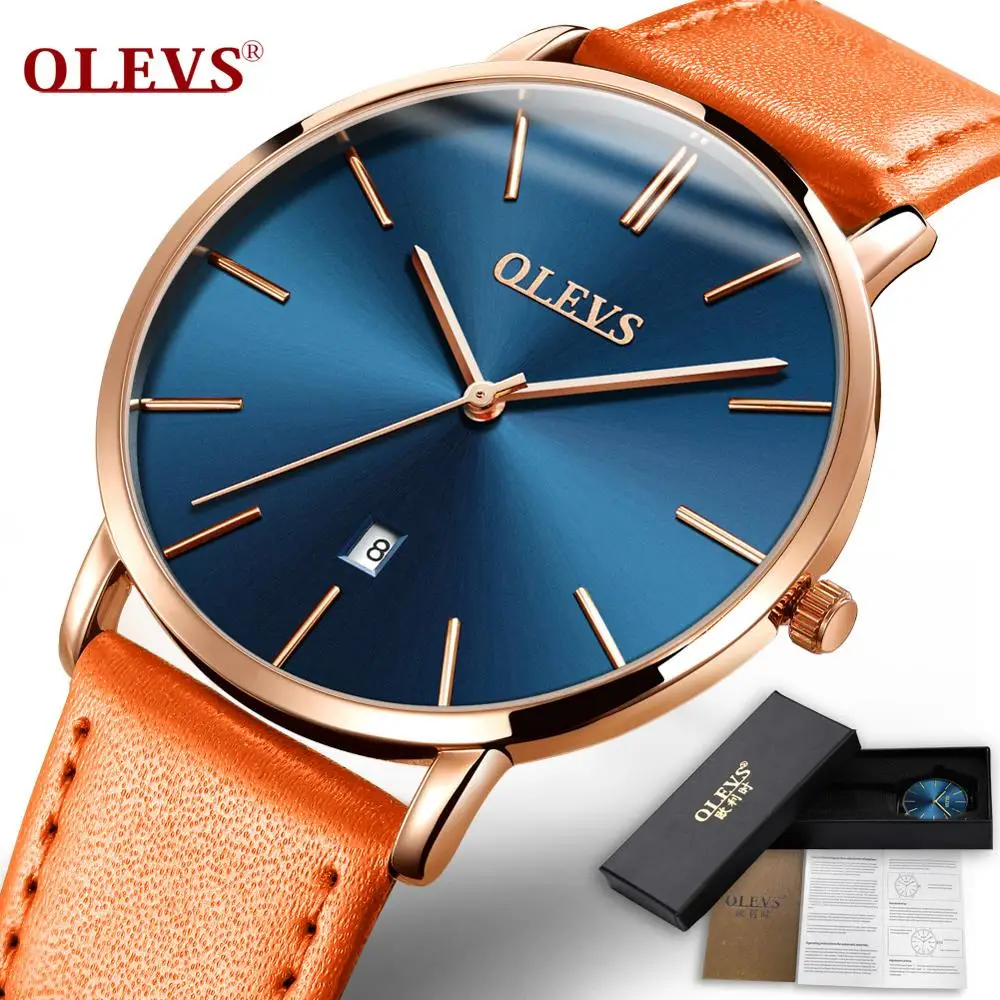 OLEVS часы мужские модные спортивные из нержавеющей стали Ультратонкий корпус кожаный ремешок часы кварцевые наручные часы для деловых людей