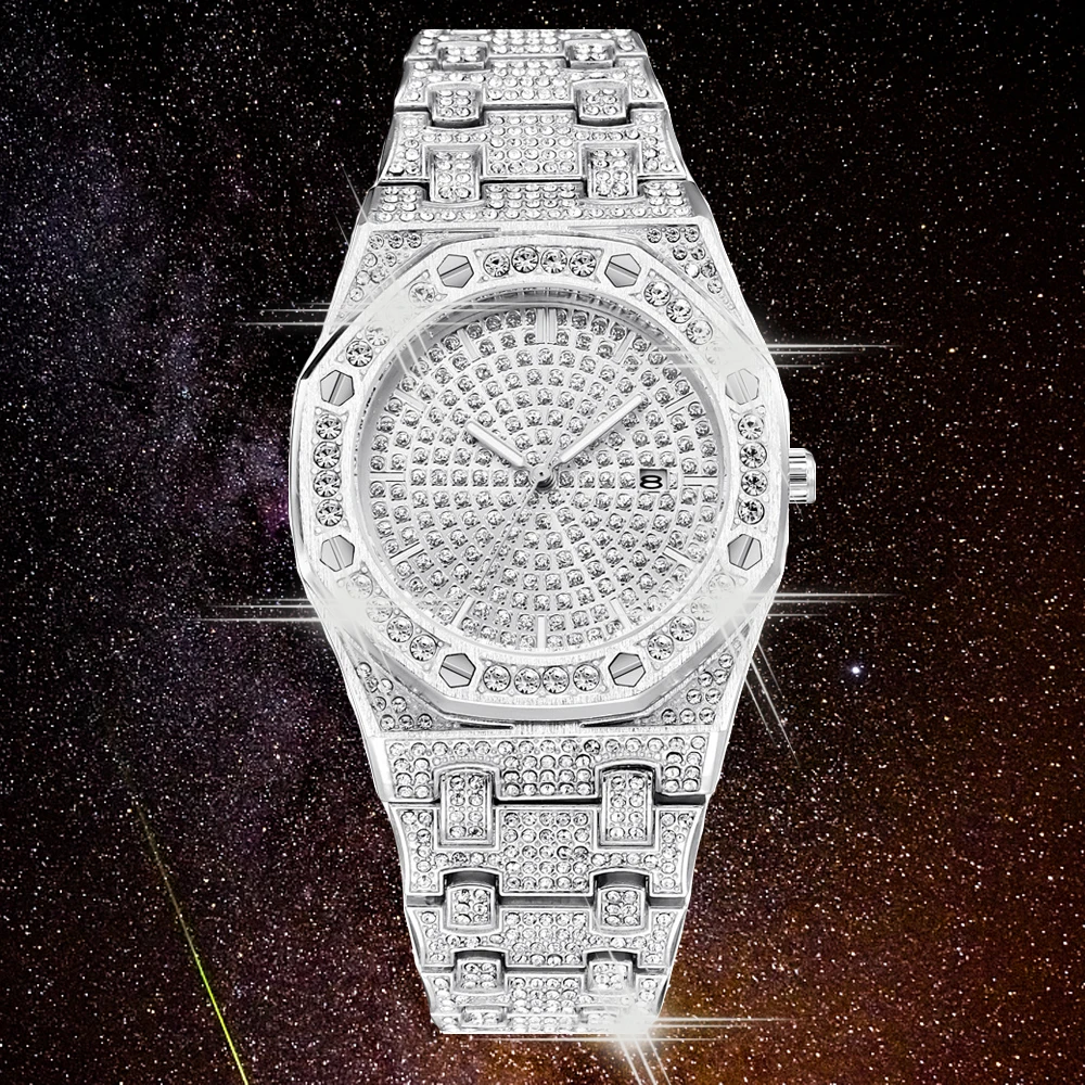 Bling Diamond Часы для мужчин Iced Out Роскошные s Мужские кварцевые часы платье наручные серебро Нержавеющая сталь Relogio Masculino
