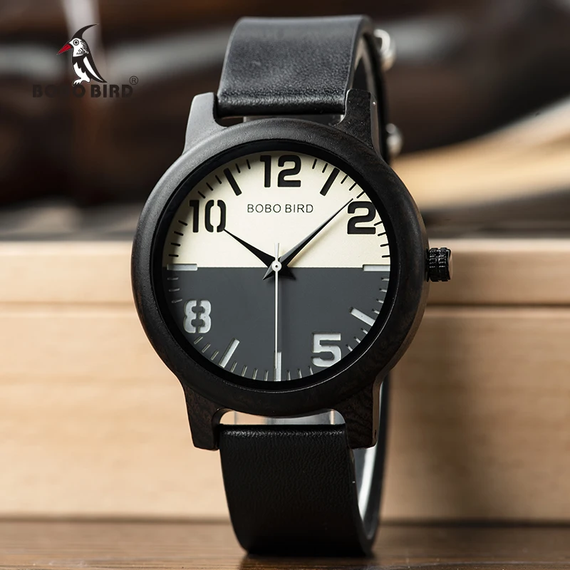 BOBO BIRD мужские часы из натуральной кожи ремешок деревянные кварцевые часы модный дизайн в подарочной бумажной коробке reloj mujer