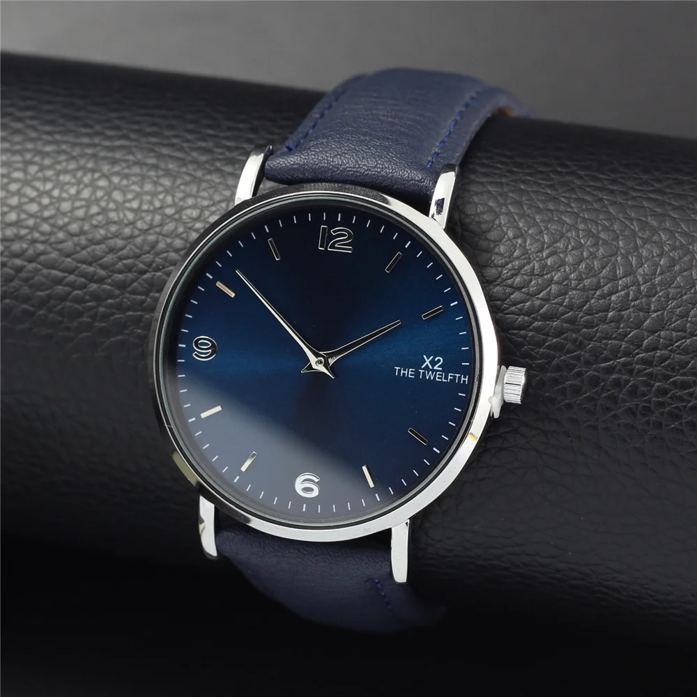 Мужской Простой Часы Мужчины Военный Кварцевые Часы Люксовый Бренд X2 ДВЕНАДЦАТОЙ Моды Часы Кожа Reloj Hombre