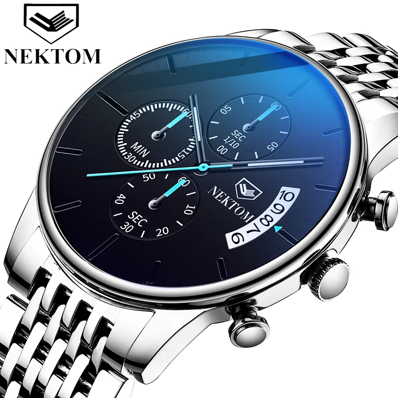 NEKTOM Часы Хронограф Спортивные мужские s часы лучший бренд класса люкс водонепроницаемые полностью стальные светящиеся кварцевые часы мужс...