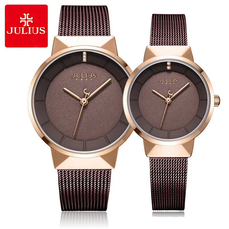 Новые тонкие Julius Для мужчин смотреть Для женщин часы пара влюбленных часы Fashion часы Нержавеющая сталь простой мальчик девушки подарок на де...