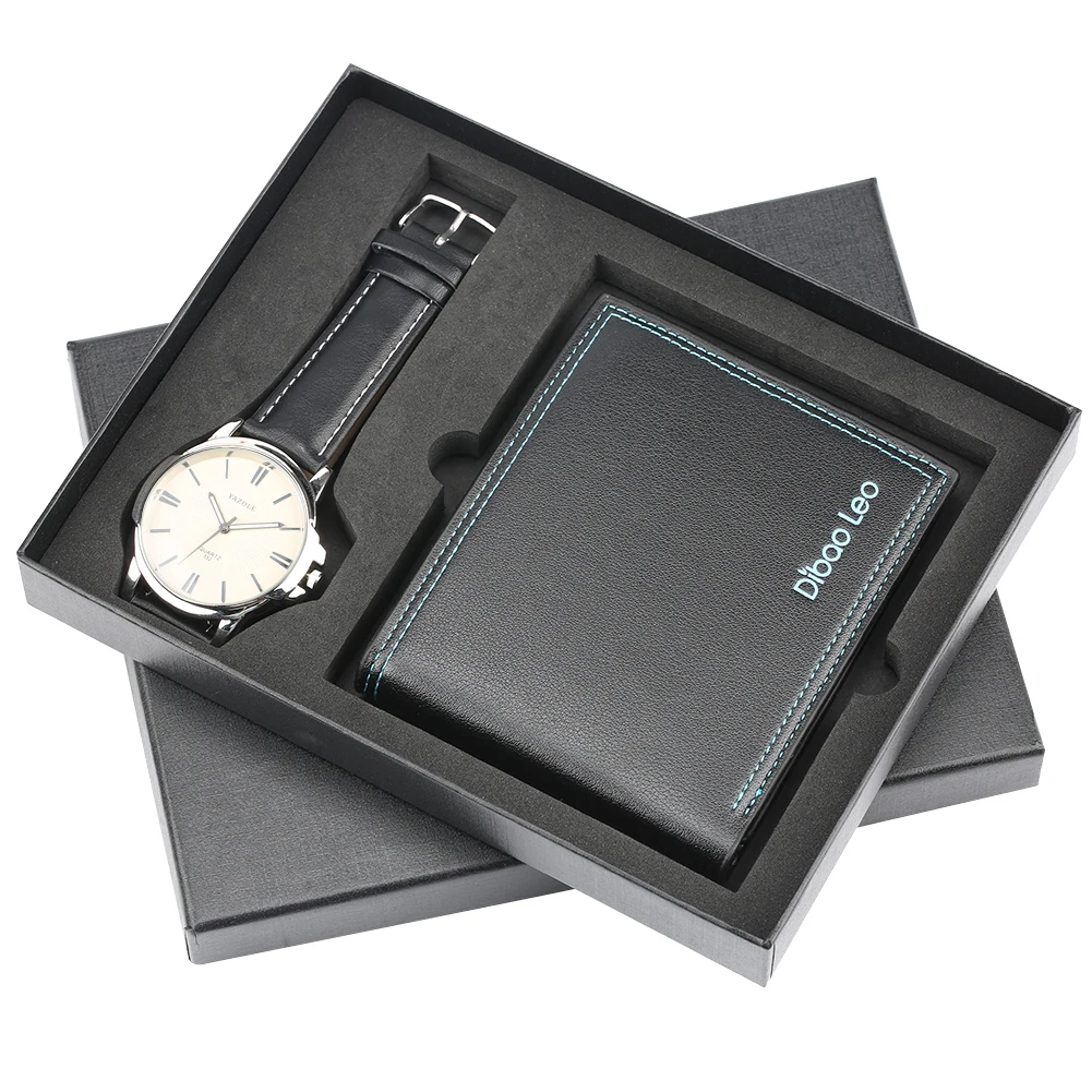 Мужские часы стальной/кожаный ремешок деловые мужские кварцевые наручные часы из натуральной кожи бумажник на подарок набор для бойфренда папы Новое поступление 2019