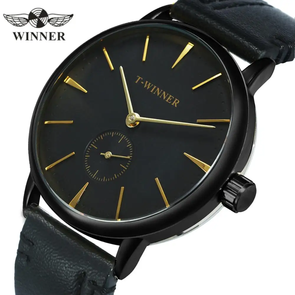 Победитель Chic черный механические часы для мужчин кожаный ремешок Роза Золотой Индекс Королевский лучший бренд класса люкс в сдержанном