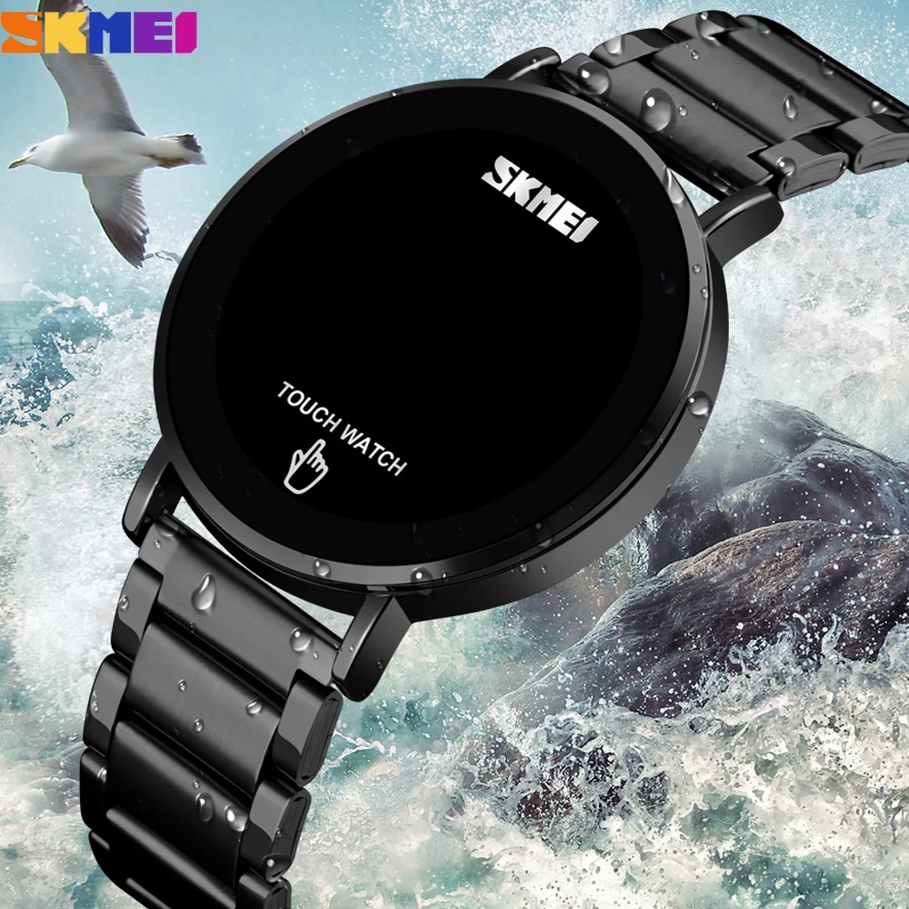 SKMEI Брендовые мужские часы, повседневный стальной ремешок, светодиодный светильник, дисплей, мужские часы, модные водонепроницаемые электр...