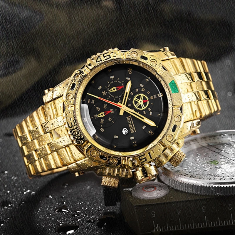 Temeite часы Для мужчин часы золотые Роскошные Нержавеющая сталь Для мужчин наручные часы кварцевые часы Для мужчин Элитный бренд Relogio Masculino
