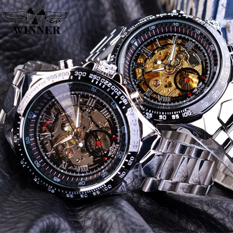 Победитель Топ бренд класса люкс автоматические механические часы мужские модные из нержавеющей стали Скелет Механические карманные часы ...