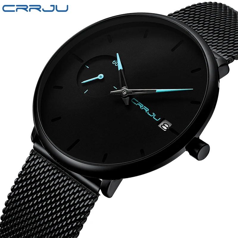 CRRJU для мужчин s часы Топ Элитный бренд Модные кварцевые часы для мужчин водостойкие тонкие сетки сталь Дата Аналоговый мужской...