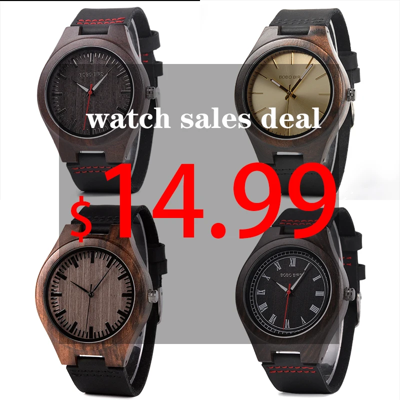 Бобо птица Классический круглый черное дерево часы для мужчин кожа кварцевые часы в продаж дело
