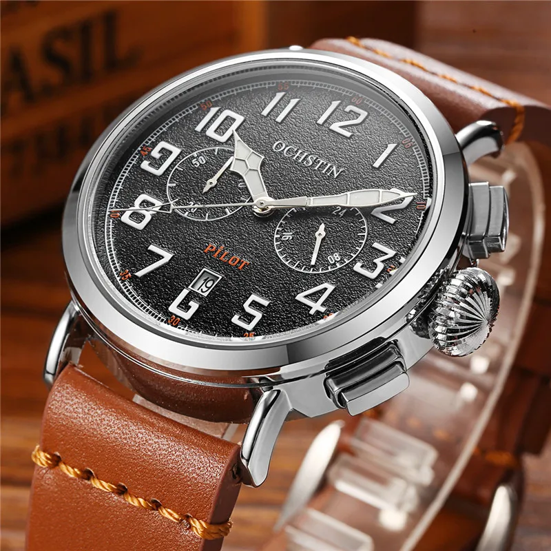 OCHSTIN модный спортивный хронограф Для мужчин Повседневное Водонепроницаемый кожа часы мужской Наручные часы Военная Relogio Masculino