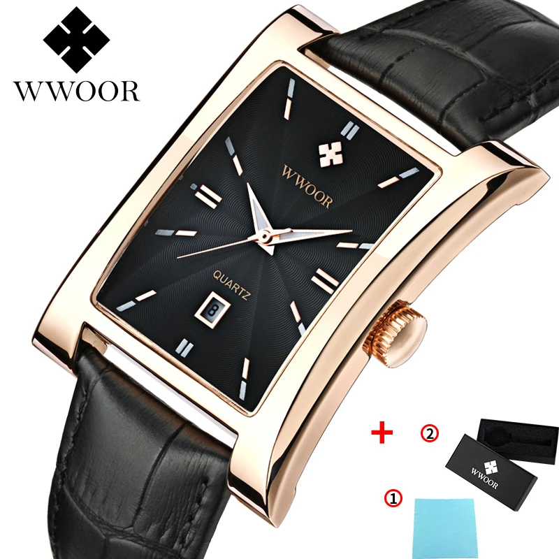 Стильные Золотые черные Брендовые мужские часы с квадратным водонепроницаемым календарем модные кварцевые часы