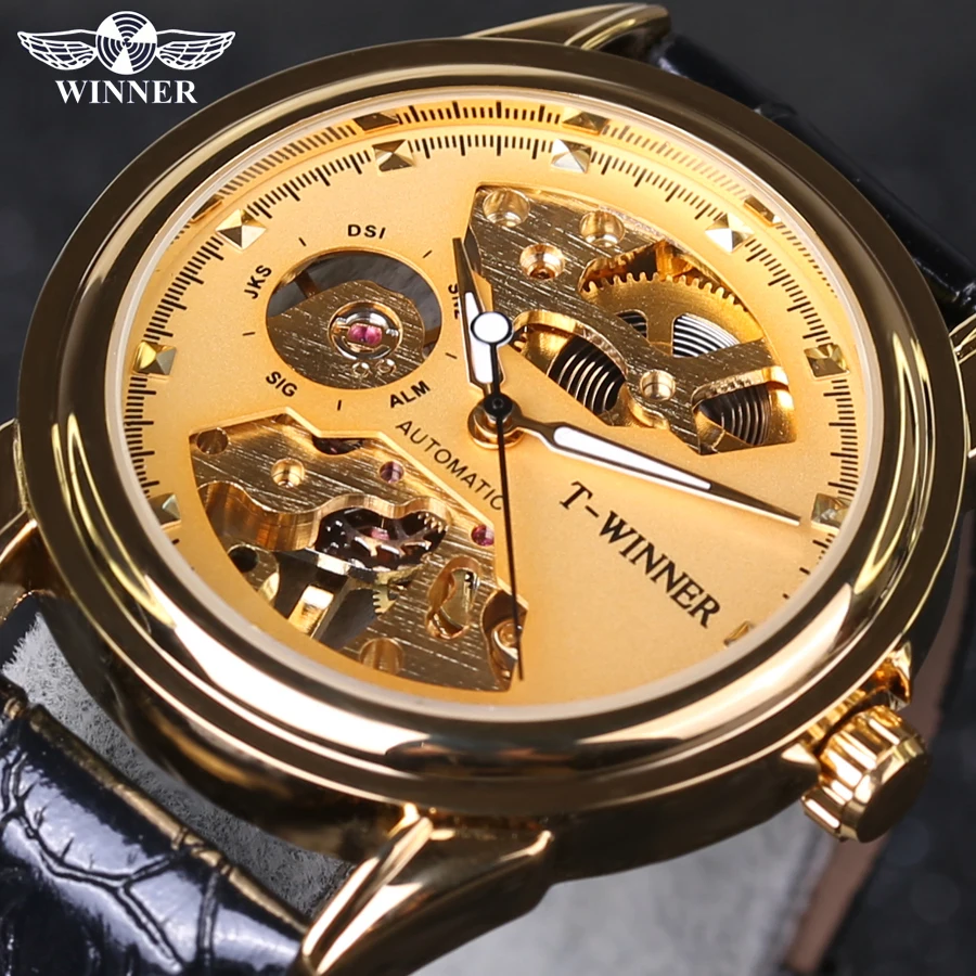 Победитель 2018 новый дизайнер прозрачный золотой повседневное Скелет нержавеющая сталь мужские часы лучший бренд класса люкс механические ...