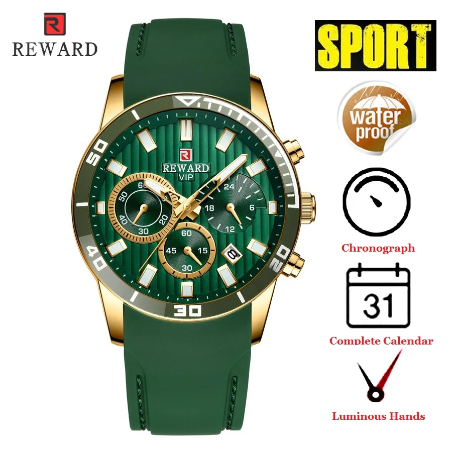 Наградные Зеленые Силиконовые часы для мужчин люксовый бренд хронограф мужские спортивные часы кожаный ремешок кварцевые наручные часы ...