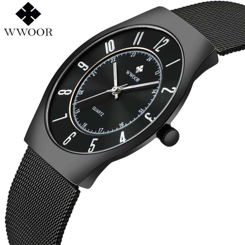 Япония кварцевые часы Повседневное ультра тонкий наручные часы Бизнес бренд сетки Бретели для нижнего белья аналоговый черный Спортивные ...