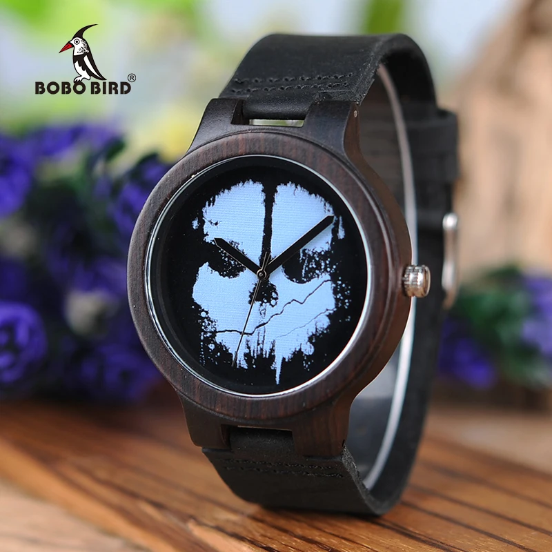 Бобо птица мужчины панк черепа деревянные часы CbD24 кожаный ремешок Лучший бренд кварцевые часы для мужчин подарки