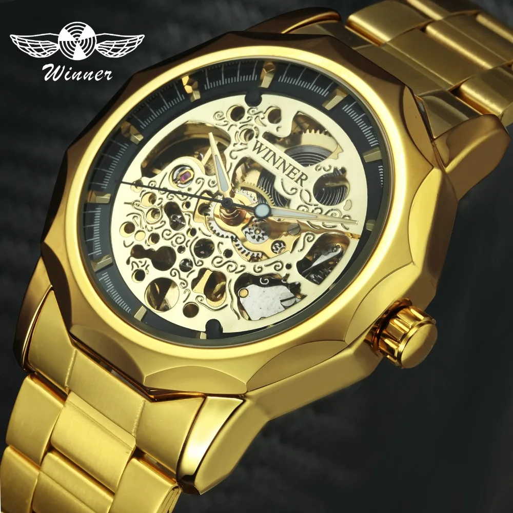 Золотые часы для мужчин 2018 победитель лучший бренд класса люкс мужчин's автомобильные механические часы светящиеся руки Скелет Королевский...