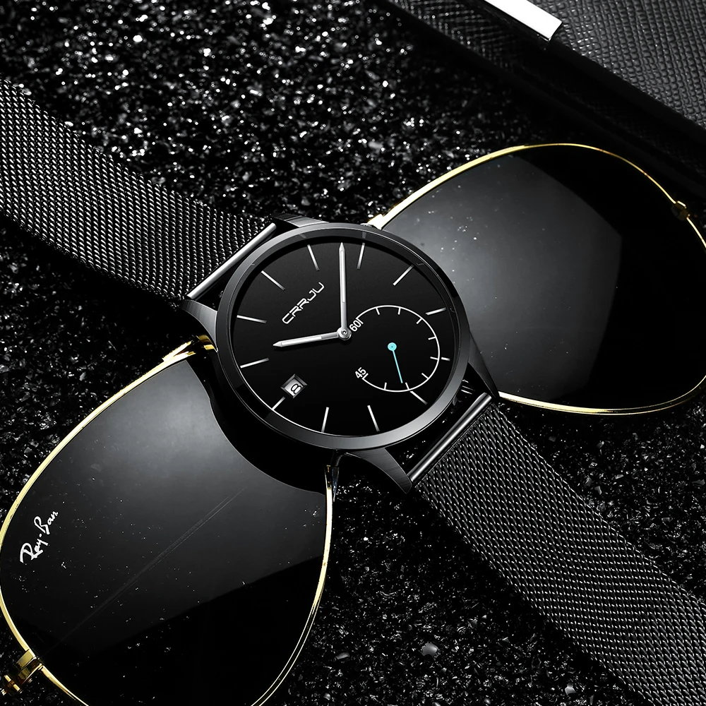 CRRJU мужские часы Новые Роскошные Брендовые Часы мужские модные спортивные кварцевые часы из нержавеющей стали с сетчатым ремешком ультра т...
