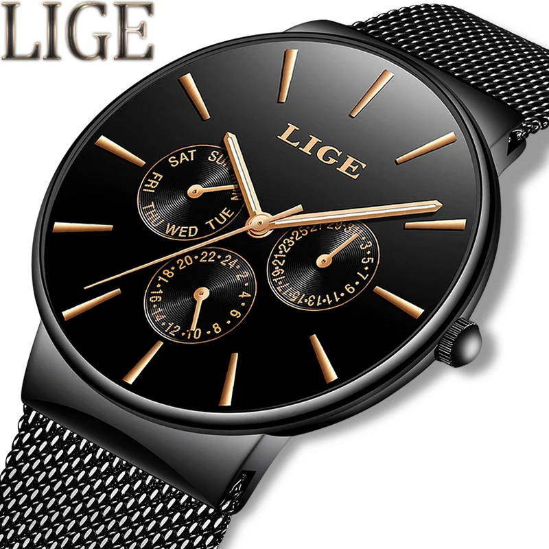 LIGE Модные Простые для мужчин s часы лучший бренд класса люкс бизнес сетки кварцевые часы с ремешком для мужчин часы мужские спортивные часы ...