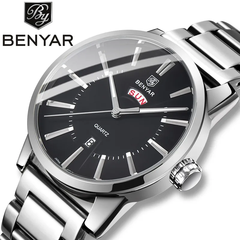 Мужские часы BENYAR, деловые кварцевые часы с двойным календарем, спортивные наручные часы, Прямая поставка, 2019