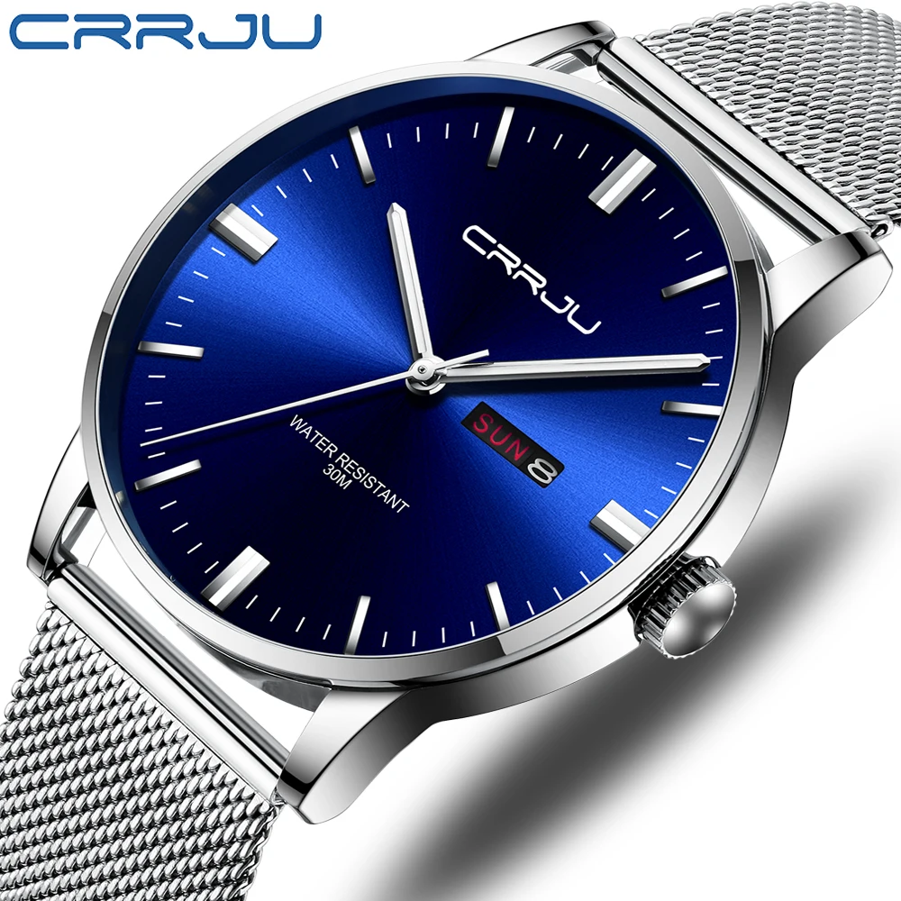 CRRJU спортивные мужские светящиеся кварцевые часы для мужчин сетка сталь водонепроницаемые 2020 подарок Дата простой дизайн часы
