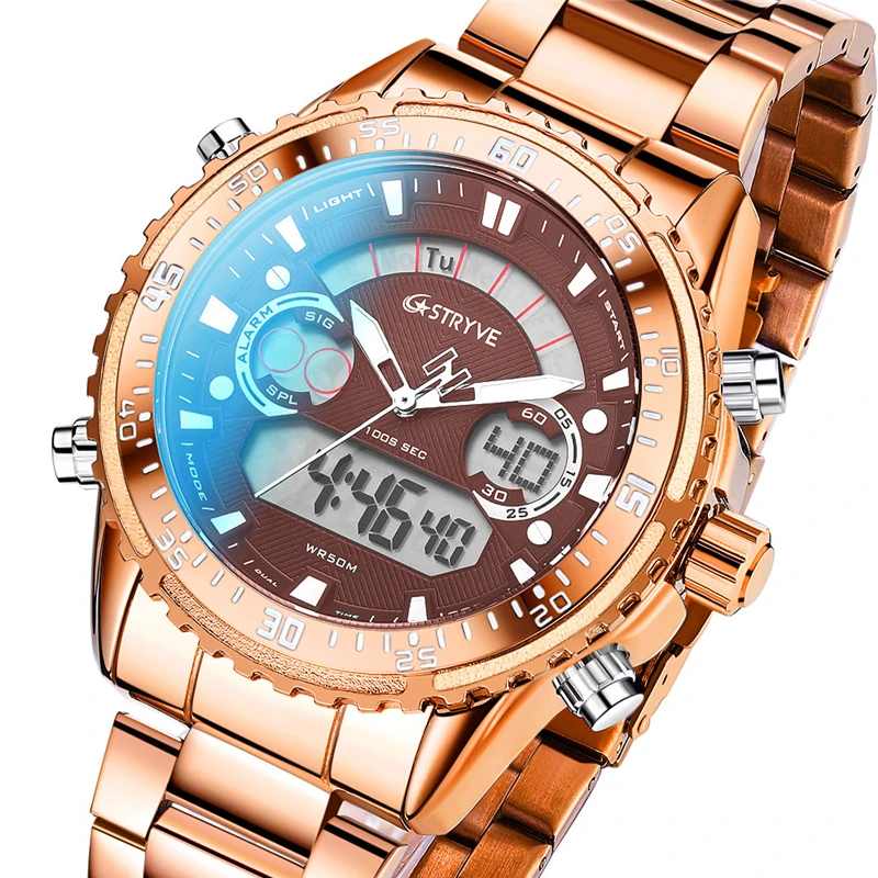 2020 Новинка Stryve 8020 Роскошные мужские часы из нержавеющей стали военные с двойным дисплеем водонепроницаемые кварцевые цифровые спортивные часы reloj hombre