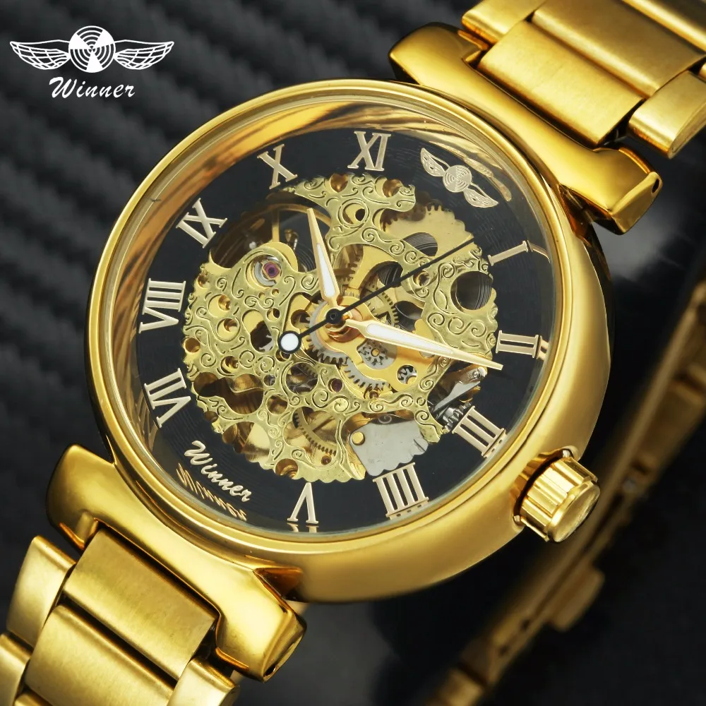 Победитель Лидирующий бренд Роскошный Золотой Скелет автоматические механические часы Для мужчин Lover Для женщин унисекс наручные часы в ст...