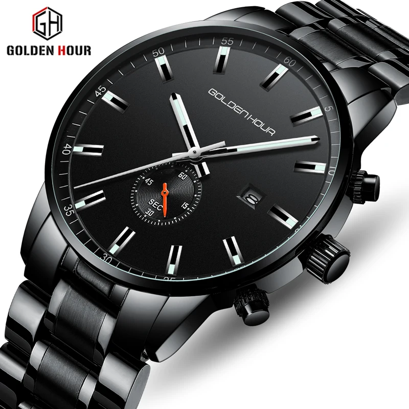 GOLDENHOUR мужские часы Топ люксовый бренд Модные из нержавеющей стали черные деловые кварцевые часы мужские спортивные водонепроницаемые нару...