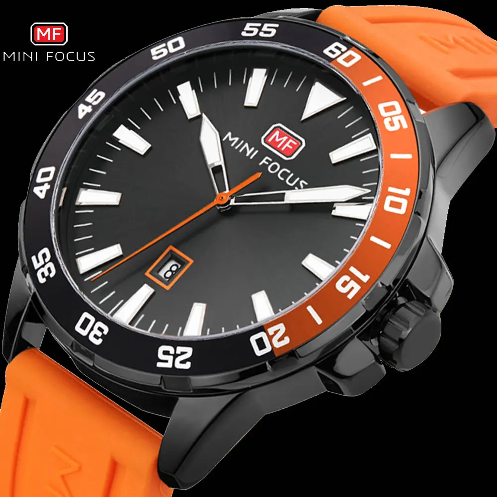 Мини фокус армейские военные спортивные часы мужские кварцевые часы Оранжевый Резиновый Ремешок океан циферблат Дата дисплей модные креативные часы