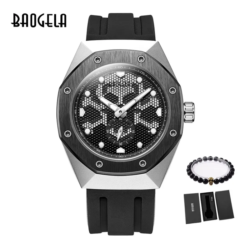 BAOGELA crâne militaire sport montres для мужчин lumineux 3 бар эктанш кальсетный кварцевый montre-мужской браслет Relogios 1810 no