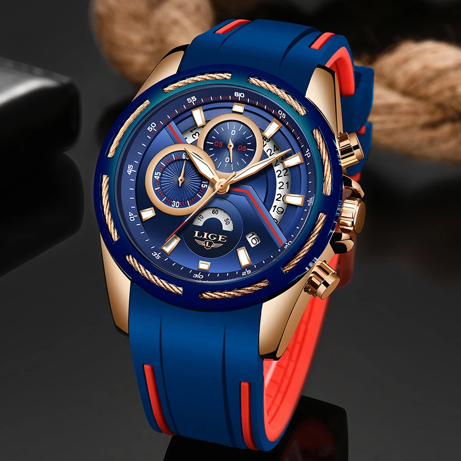 LIGE новые мужские часы лучший бренд класса люкс синие мужские часы модный кожаный ремешок спортивные наручные часы в стиле кэжуал с большим ...