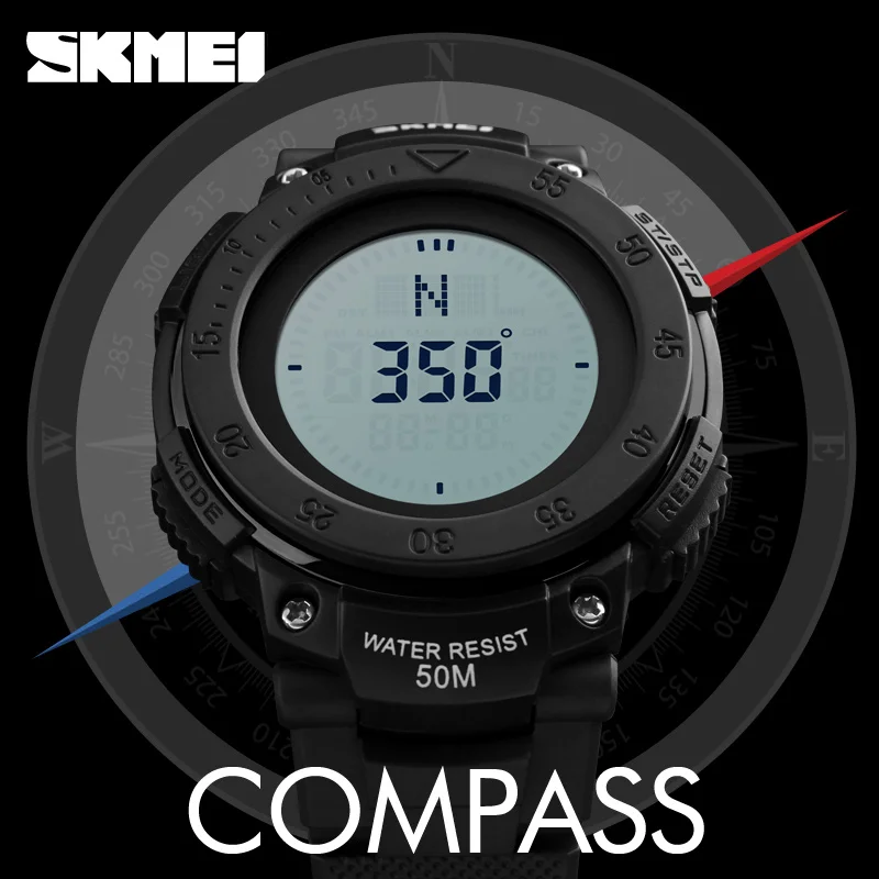 Skmei открытый спортивные часы Для мужчин обратного отсчета CHRONO ALARM компас часы Водонепроницаемый модные Цифровые наручные часы Relogio Masculino