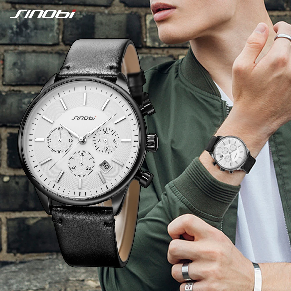 SINOBI мужские армейские часы Аналоговые Дата кварцевые наручные часы люксовый бренд мужской военный спортивный хронограф кожаные часы Relogio