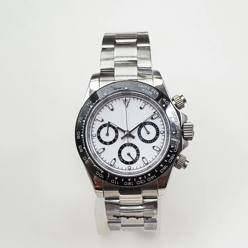 Хронограф кварцевые часы Мода 39 мм сапфировое стекло серебряный корпус стерильный циферблат 316L браслет из нержавеющей стали A5