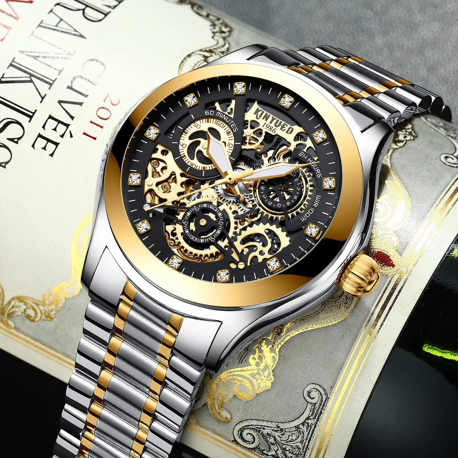 KINYUED супер механические полые часы для мужчин золотые модные водонепроницаемые светящиеся Мужские автоматические часы бизнес Relojes Hombre 2020