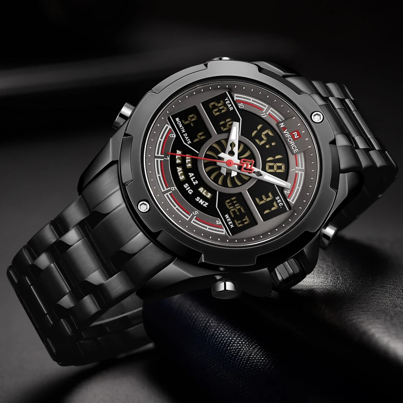 NAVIFORCE мужские часы Топ люксовый бренд мужские s Аналоговый Цифровой двойной дисплей мужские модные водонепроницаемые наручные часы из нерж...