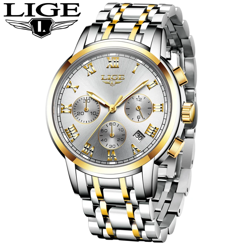 LIGE часы для мужчин лучший бренд класса люкс для мужчин s часы спортивный нержавеющая сталь водонепроницаемый хронограф кварцевые наручные ...