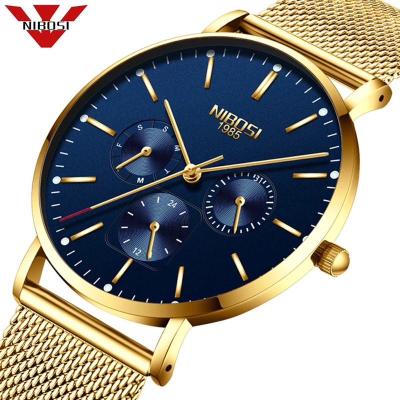NIBOSI 2019 модные часы мужские Роскошные Лучшие брендовые стальные мужские водонепроницаемые наручные часы мужские часы кварцевые часы золоты...