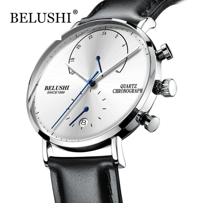 Мужские водостойкие часы кожаный ремешок тонкий кварцевые повседневные деловые мужские наручные часы лучший бренд Belushi мужские часы 2018 Мод...
